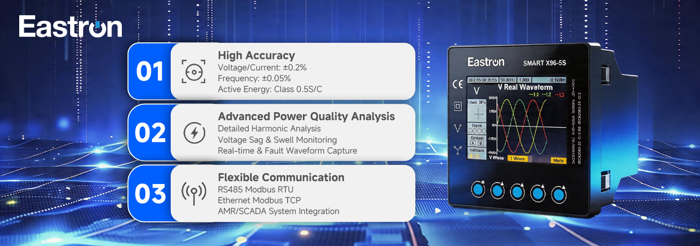 La transición energética requiere velocidad de implementación tanto como integridad de las mediciones. Al combinar medición de alta precisión, análisis de calidad de energía y registro de fallas en un paquete disponible, Eastron Smart X96-5S lo ayuda a despejar un camino crítico hacia la puesta en servicio.
