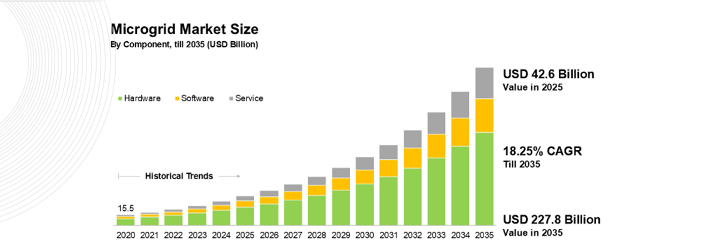 A medida que la descarbonización industrial se acelera a nivel mundial, las microrredes inteligentes se están convirtiendo en infraestructura crítica para operaciones sostenibles. Según el Informe de mercado de microrredes 2025-2035, se prevé que el mercado mundial de microrredes aumente de 42.600 millones de dólares en 2025 y 227.800 millones de dólares en 2035, lo que representa una tasa compuesta anual del 18,25% durante el período previsto. Sin embargo, persisten desafíos clave: