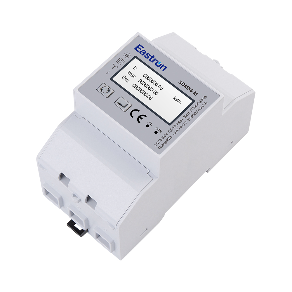 El SDM54 es un medidor multifunción directo trifásico de carril DIN de 3 módulos MID para medición de carga de vehículos eléctricos. Mide y muestra las características de suministros monofásicos de dos hilos (1p2w) y trifásicos de cuatro hilos (3p4w), incluyendo voltaje, frecuencia, corriente, potencia, factor de potencia, energía activa y reactiva, importada o exportada. La energía se mide en términos de kWh y kVArh. La demanda máxima de energía y corriente se puede medir durante períodos preestablecidos de hasta 60 minutos, de tamaño mini (54 mm de ancho), popular entre las aplicaciones de sistemas de carga de vehículos eléctricos trifásicos.