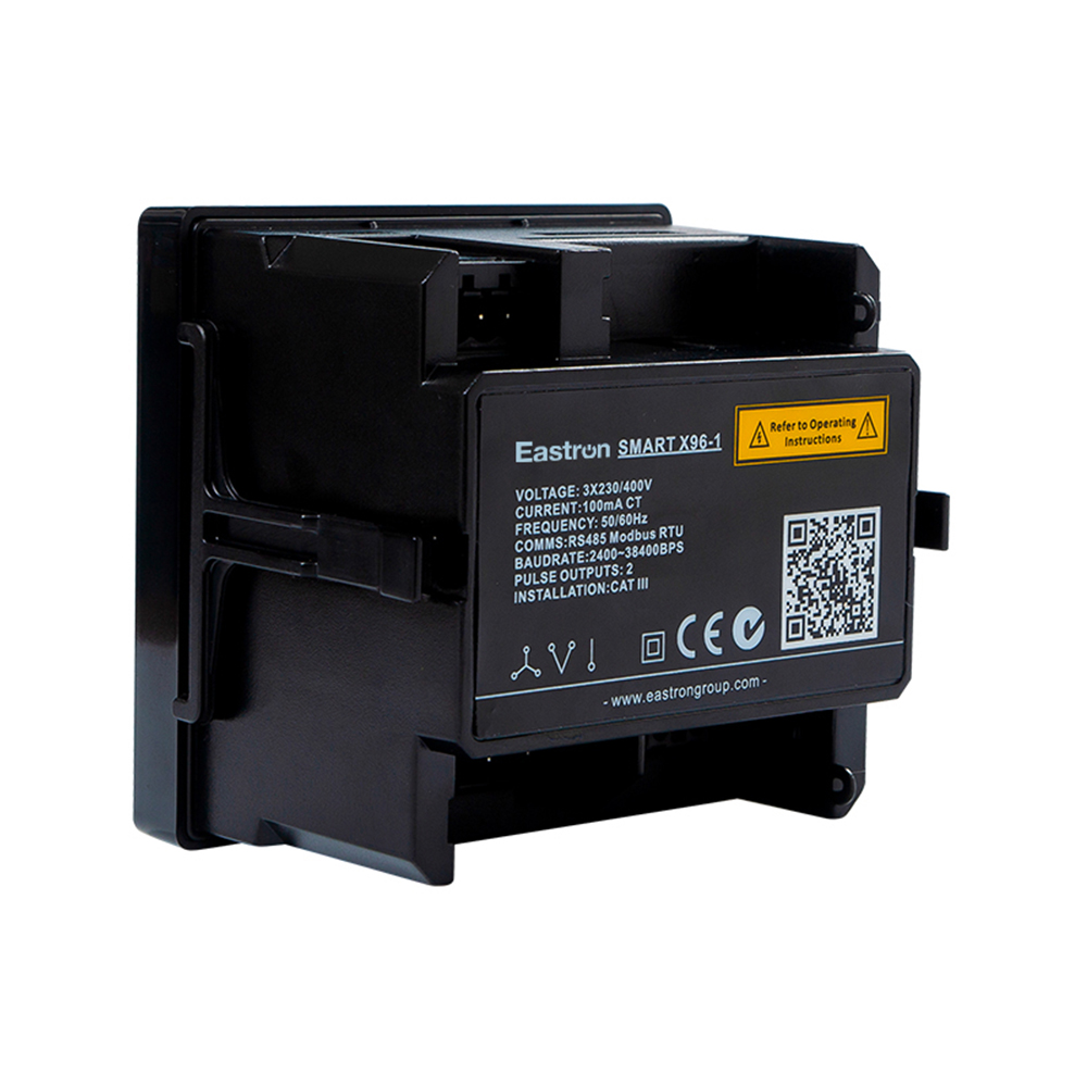 Eastron Smart X96-1A es un analizador de potencia multifunción montado en panel Modbus RS485 tipo RJ CT. El medidor mide y muestra las características de los proveedores 1p2w, 3p4w y 3p3w, incluyendo voltaje, corriente, frecuencia, potencia, energía activa y reactiva, importada y exportada, armónicos, demanda máxima, etc.