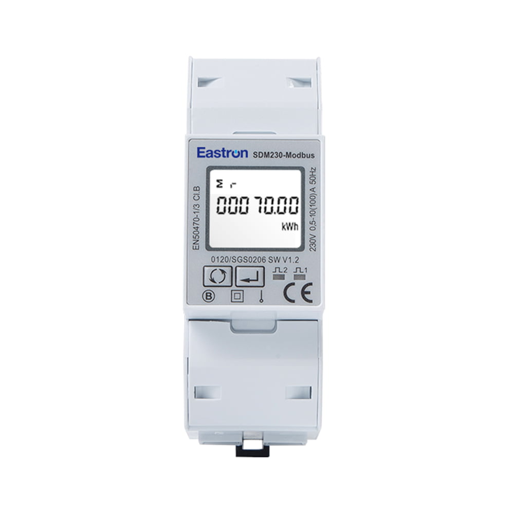 El SDM230-Modbus es un medidor de energía ETL monofásico multifuncional Modbus de carril DIN RS485. Mide energía activa, energía reactiva, corriente, voltaje, potencia, factor de potencia, frecuencia, etc. Las unidades admiten máx. Conexión directa de 65A, ahorrando costos y evitando problemas para conectar CT externos. Se proporcionan dos salidas de pulso y 1 puerto de comunicación (RS485 Modbus/DLT645) para monitoreo y configuración remota, adecuados para monitorear el consumo de energía en aplicaciones residenciales, solares fotovoltaicas, sistemas de carga de vehículos eléctricos, industriales y de servicios públicos.